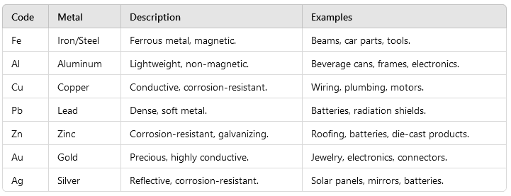 Metal recycling codes are an essential part of the recycling process, helping identify and classify different types of metals for efficient recycling. These codes ensure that metals are processed correctly and reused in the most environmentally friendly way. Below is an in-depth look at metal recycling codes and their significance.